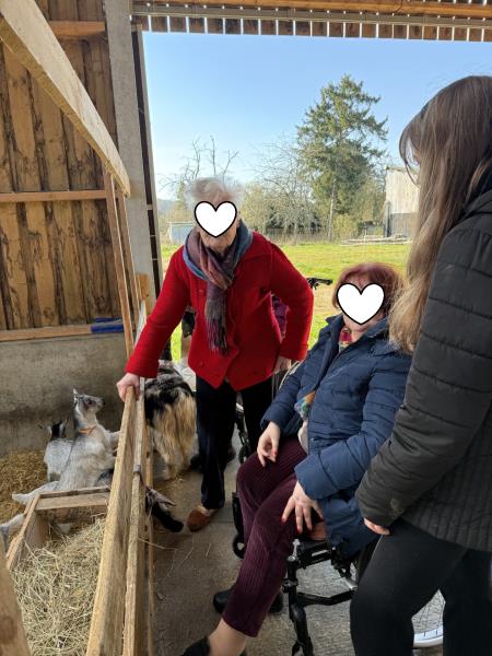 Le mois de mars signe la sortie annuelle que les Résidents adorent : La sortie à la ferme des Domoiselles ! Au programme : visite de la bergerie, câlins, et dégustation de fromage !