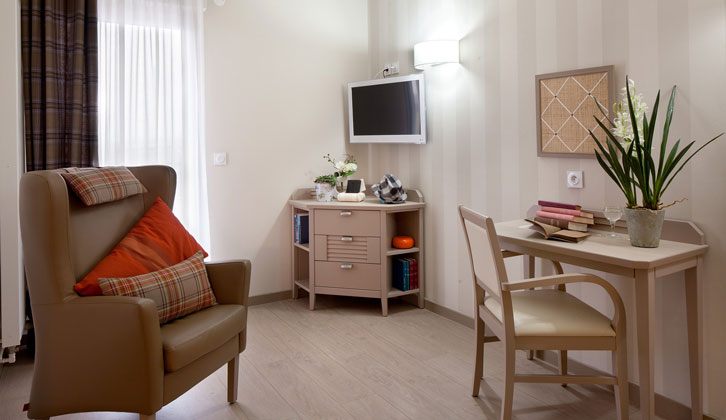 Les chambres sont meublées et équipées d’un système d’appel permettant d’obtenir l’aide et l’assistance médicale nécessaires. Vous avez la possibilité d’aménager votre chambre avec du petit mobilier personnel.